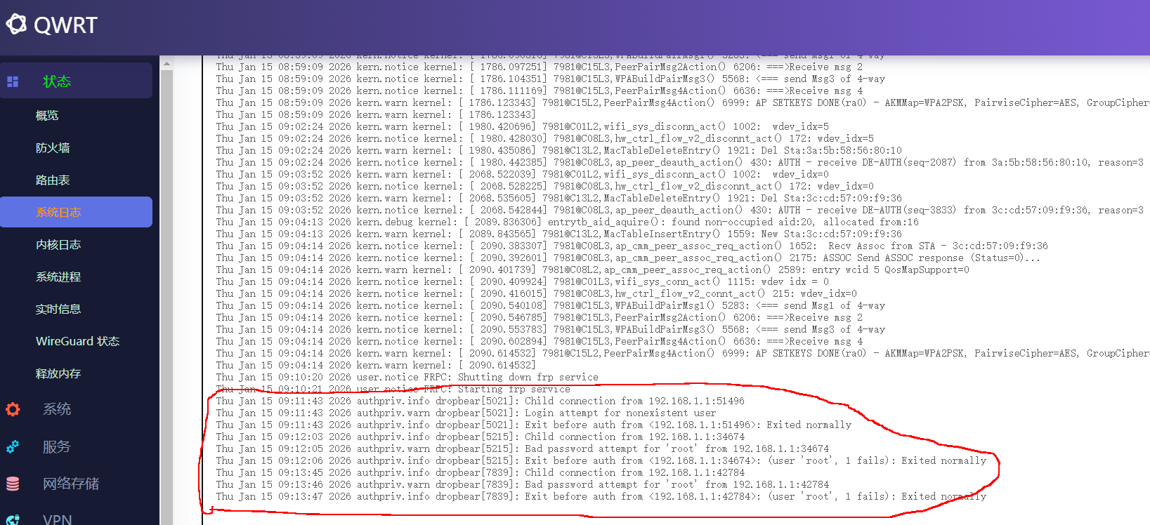 查看openwrt系统日志时,偶然发现有很多尝试登录ssh的攻击