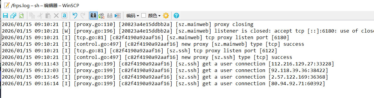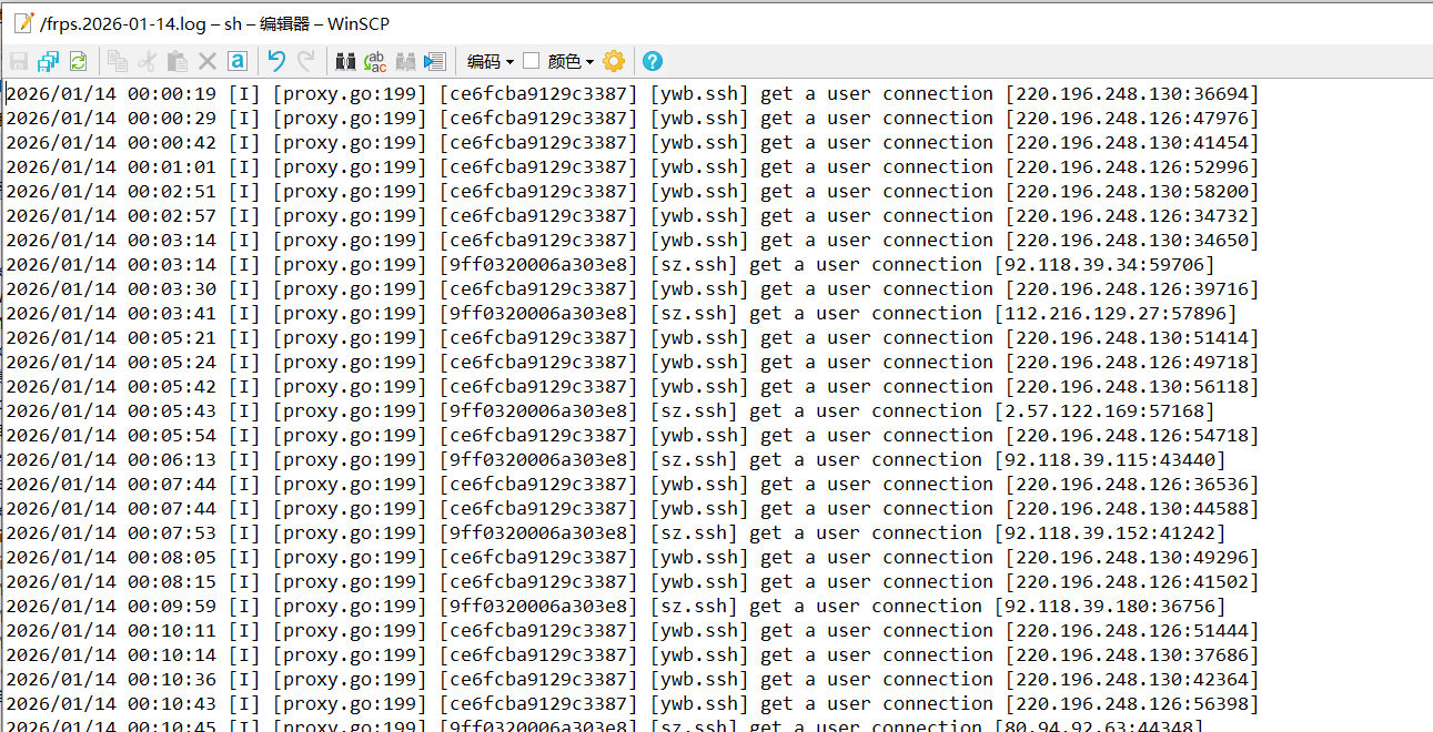 查看frp服务器的日志,发现了大量的登录请求
