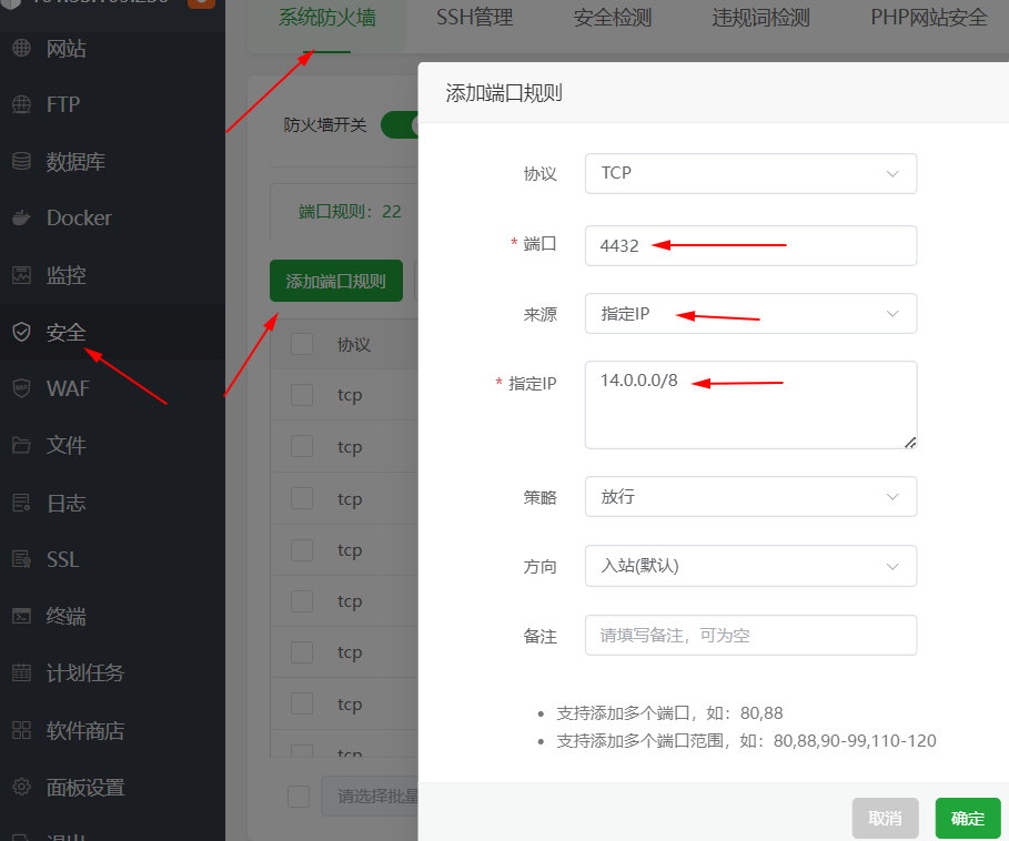 简单一点,可以直接将你自己本身常用的公网ip地址段添加到对应端口的通行白名单,这个地址段之外的计算机不能访问此端口